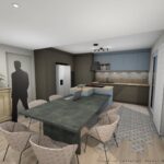 Pour répondre à leur désir de modernisation, Studio Creatis, un expert cuisiniste sur mesure à Lyon, a proposé de supprimer complètement la séparation existante entre la cuisine et le coin repas-séjour. Cette décision audacieuse permet l’intégration d’un grand îlot central au cœur de la pièce, devenant ainsi un élément clé de la nouvelle conception.